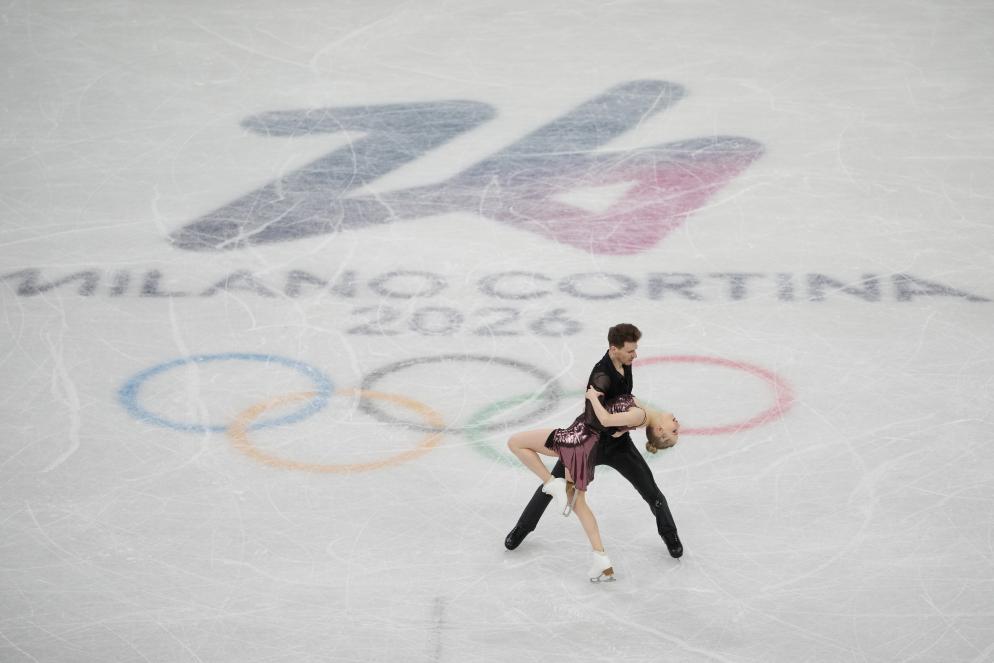 ↑2月9日,芬兰组合图尔基拉(前)/费斯勒伊斯在米兰冬奥会项目溜冰冰舞韵律舞比赛中。新华社记者 薛宇舸 摄